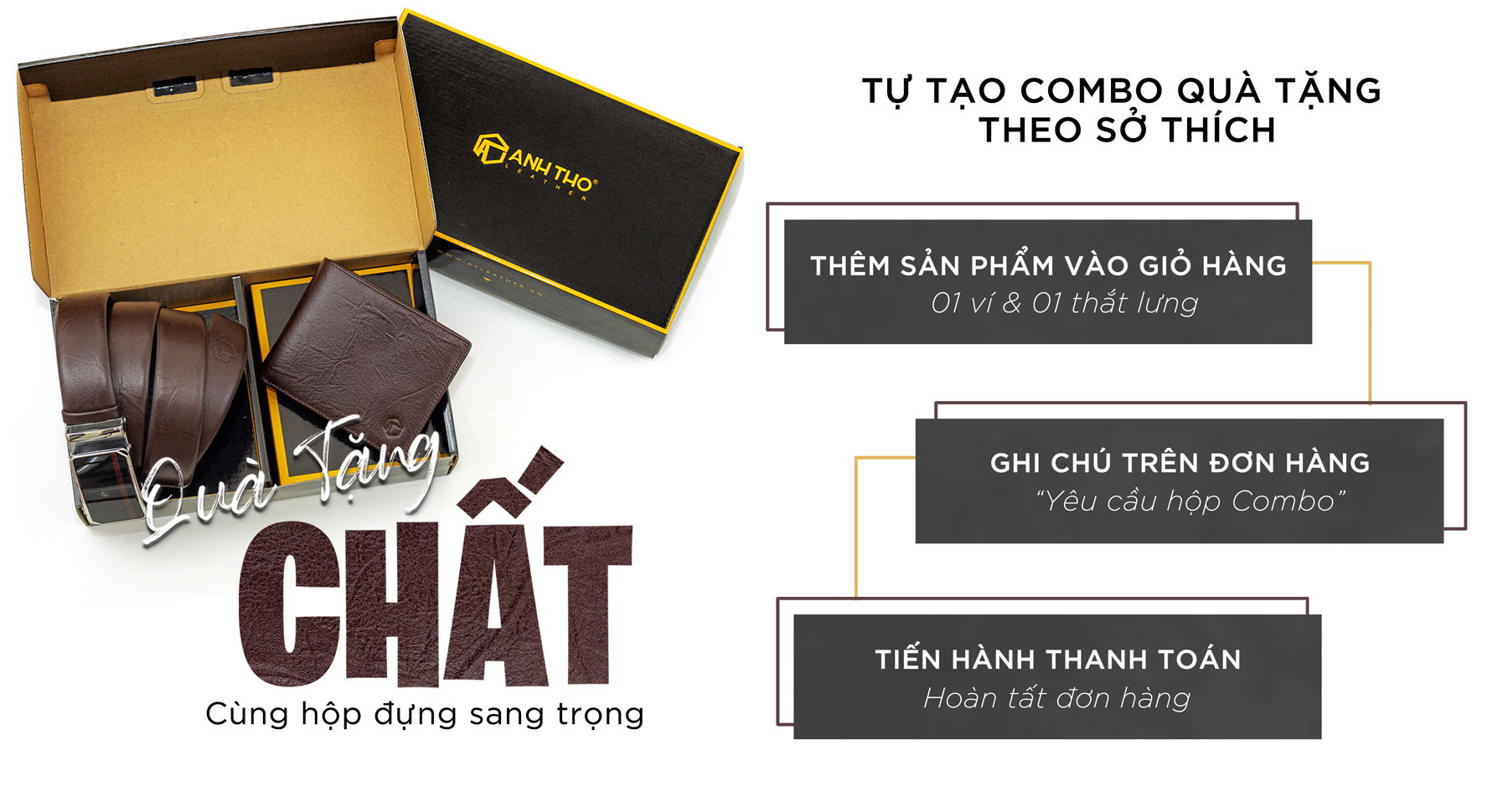 Quý khách vui lòng xem và làm theo hướng dẫn bên dưới để được hỗ trợ chuyển đổi sang HỘP ĐỰNG COMBO mới nhất từ Anh Tho Leather: