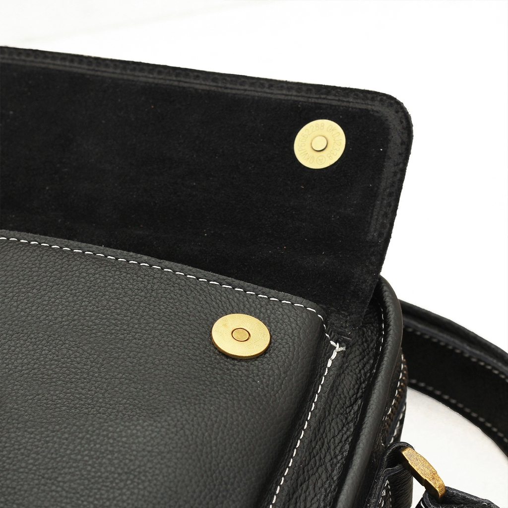 Bên trong là lớp lót vải cotton mềm mịn, bảo vệ đồ đạc an toàn. Hệ thống khóa và móc bằng hợp kim chống gỉ, vận hành chắc chắn và bền bỉ. Dây đeo to bản khỏe khoắn, điều chỉnh được độ dài linh hoạt để phù hợp mọi kiểu dáng và phong cách.